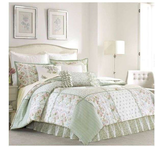 Laura Ashley - Queen Comforter Set, Reversible Cotton Bedding with Matching Shams & Bedskirt, Stylish Home Decor for All Seasons (Harper Sage, Queen)
