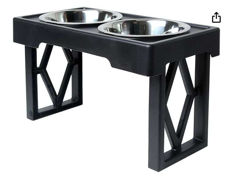 Pet Zone Elevated Dog Bowls Designer Diner 3 Height Adjustable Raised Dog Bowl Stand with 2 Stainless Steel Dog Bowls (7 Cup Capacity Each)