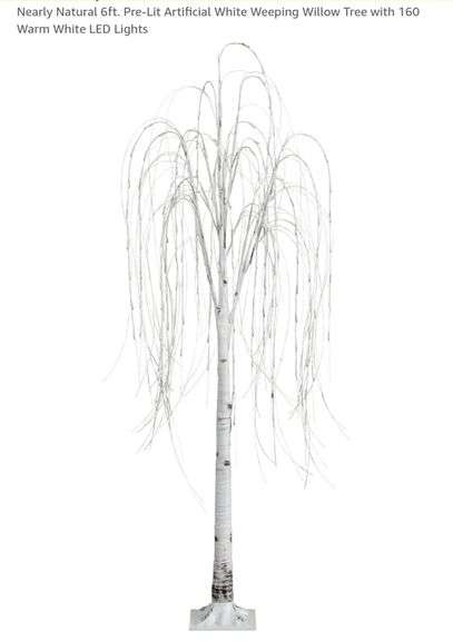 LOT 386 - Nearly Natural 6ft. Pre-Lit Artificial White Weeping Willow Tree with 160 Warm White LED Lights