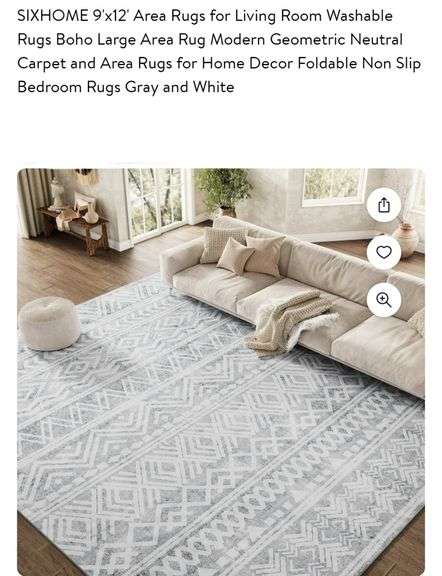 SIXHOME 9'x12' Area Rugs for Living Room Washable Rugs Boho Large Area Rug Modern Geometric Neutral Carpet and Area Rugs for Home Decor Foldable Non Slip Bedroom Rugs Gray and White
