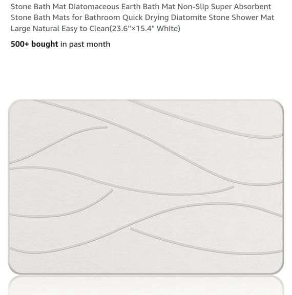 Stone Bath Mat Diatomaceous Earth Bath Mat Non-Slip Super Absorbent Stone Bath Mats for Bathroom Quick Drying Diatomite Stone Shower Mat Large Natural Easy to Clean(23.6''×15.4" White)