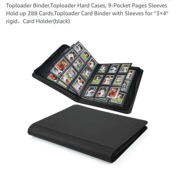 Toploader Binder,Toploader Hard Cases, 9-Pocket Pages Sleeves Hold up 288 Cards.Toploader Card Binder with Sleeves for “3×4” rigid,Card Holder(black)