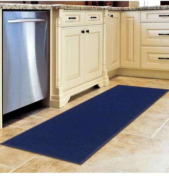 Machine Washable Modern Solid Design Non-Slip Rubberback 2x5 Traditional Runner Rug for Hallway, Kitchen, Bedroom, Entryway, 20" x 59", Navy