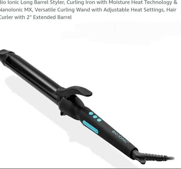 LOT 94 - Bio Ionic Long Barrel Styler, Curling Iron with Moisture Heat Technology & NanoIonic MX, Versatile Curling Wand with Adjustable Heat Settings, Hair Curler with 2" Extended Barrel