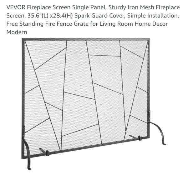 VEVOR Fireplace Screen Single Panel, Sturdy Iron Mesh Fireplace Screen, 35.6"(L) x28.4(H) Spark Guard Cover, Simple Installation, Free Standing Fire Fence Grate for Living Room Home Decor Modern