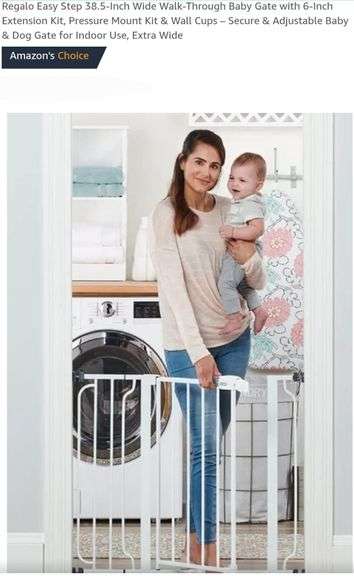 Regalo Easy Step 38.5-Inch Wide Walk-Through Baby Gate with 6-Inch Extension Kit, Pressure Mount Kit & Wall Cups – Secure & Adjustable Baby & Dog Gate for Indoor Use, Extra Wide