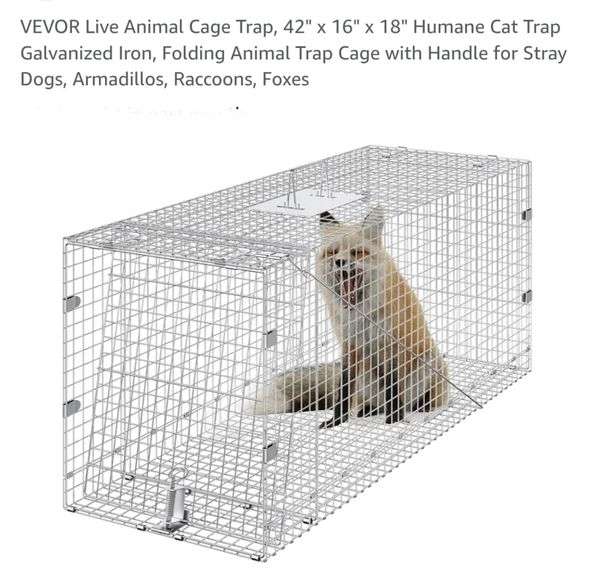 VEVOR Live Animal Cage Trap, 42" x 16" x 18" Humane Cat Trap Galvanized Iron, Folding Animal Trap Cage with Handle for Stray Dogs, Armadillos, Raccoons, Foxes