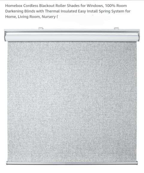 Read! Homebox Cordless Blackout Roller Shades for Windows, 100% Room Darkening Blinds with Thermal Insulated Easy Install Spring System for Home, Living Room, Nursery