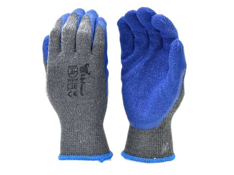 LOT 710 - G & F Work Gloves - Rubber Latex Coated - Leather 12-Pairs (Men), XLarge , blue and yellow
