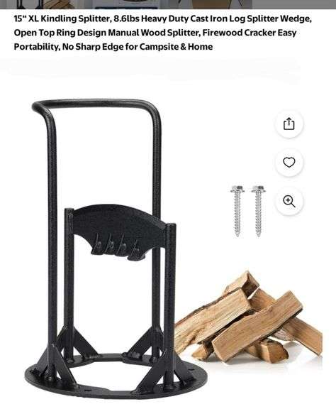 15“ XL Kindling Splitter, 8.6lbs Heavy Duty Cast Iron Log Splitter Wedge, Open Top Ring Design Manual Wood Splitter, Firewood Cracker Easy Portability, No Sharp Edge for Campsite & Home