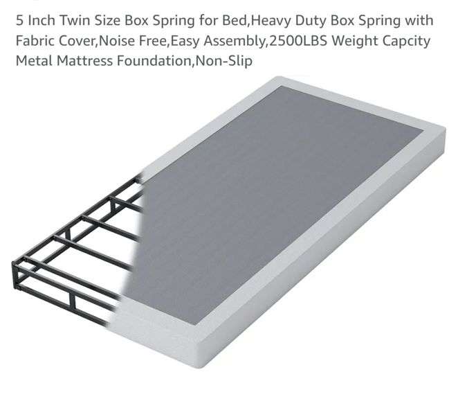 5 Inch Twin Size Box Spring for Bed,Heavy Duty Box Spring with Fabric Cover,Noise Free,Easy Assembly,2500LBS Weight Capcity Metal Mattress Foundation,Non-Slip