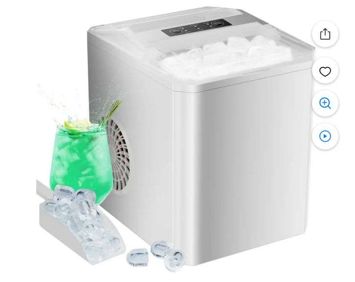 Countertop Ice Maker, 26 lbs in 24 Hrs, 9 Ice Cubes Ready in 6 Mins, Self-Cleaning, with Basket & Scoop, For Home, Camping, White