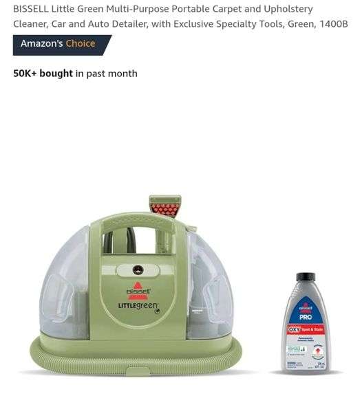 BISSELL Little Green Multi-Purpose Portable Carpet and Upholstery Cleaner, Car and Auto Detailer, with Exclusive Specialty Tools, Green, 1400B