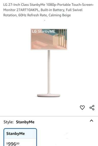 LOT 1TV - LG 27-Inch Class StanbyMe 1080p-Portable Touch-Screen-Monitor 27ART10AKPL, Built-in Battery, Full Swivel Rotation, 60Hz Refresh Rate, Calming Beige