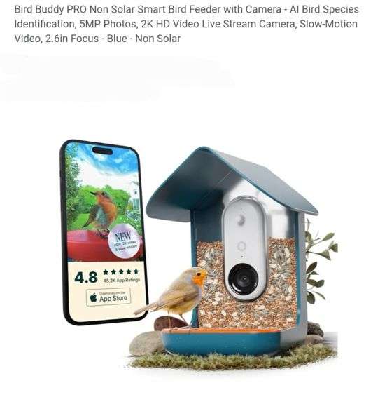 Bird Buddy PRO Non Solar Smart Bird Feeder with Camera - AI Bird Species Identification, 5MP Photos, 2K HD Video Live Stream Camera, Slow-Motion Video, 2.6in Focus - Blue - Non Solar