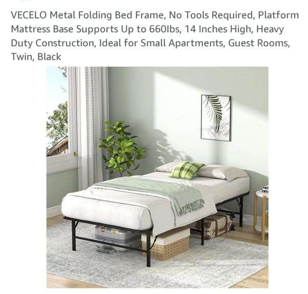 VECELO Metal Folding Bed Frame, No Tools Required, Platform Mattress Base Supports Up to 660Ibs, 14 Inches High, Heavy Duty Construction, Ideal for Small Apartments, Guest Rooms, Twin, Black