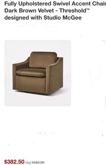 LOT 10BR - Fully Upholstered Swivel Accent Chair Dark Brown Velvet - Threshold™ designed with Studio McGee