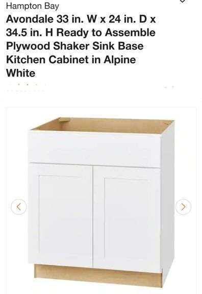 Hampton Bay Avondale 33 in. W x 24 in. D x 34.5 in. H Ready to Assemble Plywood Shaker Sink Base Kitchen Cabinet in Alpine White