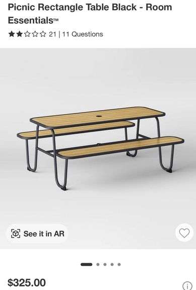 LOT 11y - Picnic Rectangle Table Black - Room Essentials