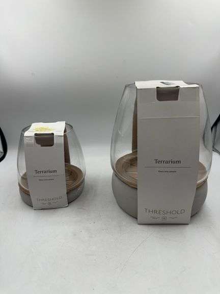 Large Round Glass with Cement Base Indoor Outdoor Terrarium 6.62"x6.62" and 5”x5” Round Glass with Cement Base Indoor Outdoor Terrarium - Threshold™