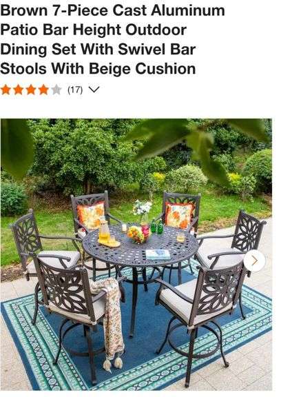 READ!!! Brown 5-Piece Cast Aluminum Patio Bar Height Outdoor Dining Set With Swivel Bar Stools With Beige Cushion