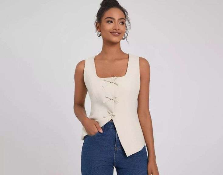 MISCELLANEOUS LOT! Wild fable size small striped blue and white pajamas pants. Women's knit tank top size S . Black barrel stylish pants. Olive green short sleeve dress . Women's wearing vest. & Gree