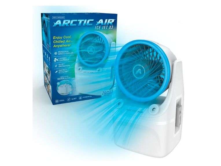 Arctic Air Ice Jet X3 Portable Air Cooler,Dual Mist Modes, Up to 8-Hour Cooling Time, 3-Speed Portable Cooler with Adjustable Airflow, USB C, LED Mood Light, Lightweight, Great for Home & Travel