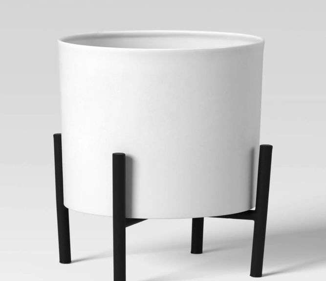 Metal Indoor Outdoor Planter and Stand Set White - Threshold