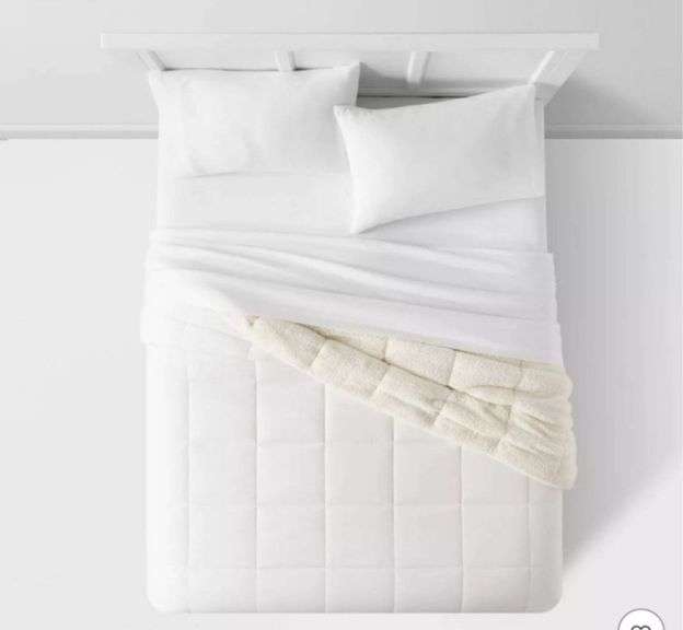 LOT 467 - (3) Faux Shearling Washed Microfiber Reversible Comforter - Room Essentials-(2) grey and (1) white