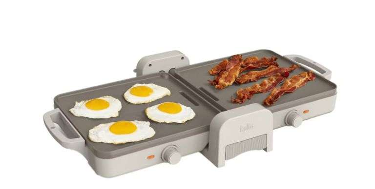 LOT 710 - bella Fold and Store Dual Temp Griddle Oatmilk: 1200W Electric Hot Plate, Aluminum Cooking Surface
