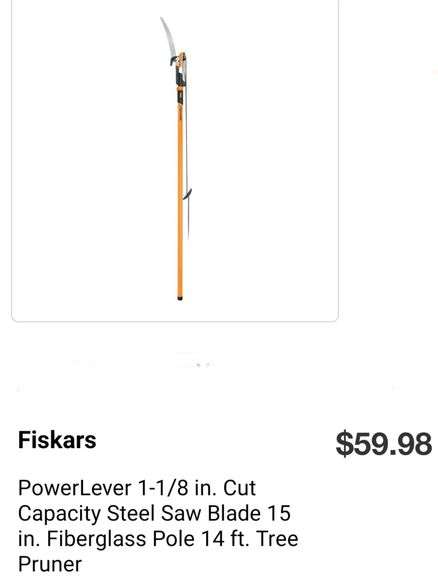 READ!! Fiskars PowerLever 1-1/8 in. Cut Capacity Steel Saw Blade 15 in. Fiberglass Pole 14 ft. Tree Pruner