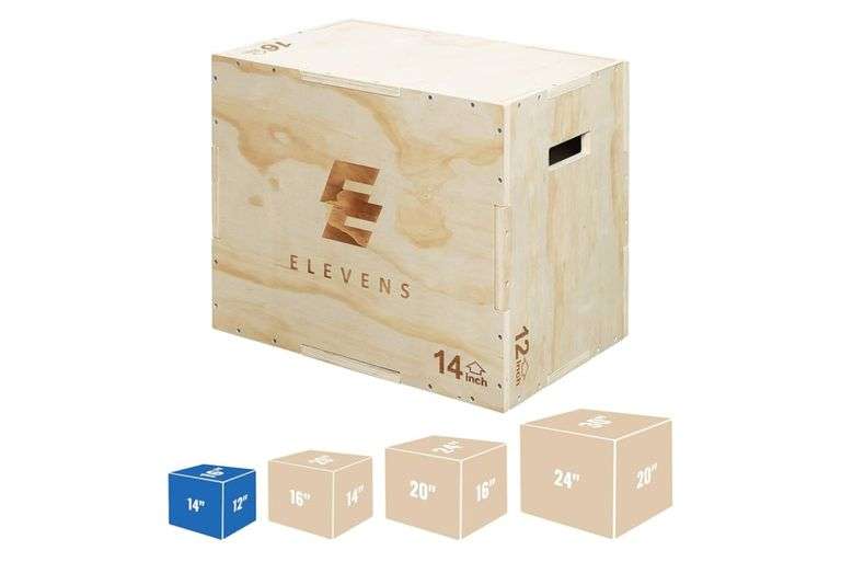 Elevens 3 in 1 Wooden Plyo Box Jump Box Plyometric Box for Jumping Trainer, Skipping, Jumping, Lunges, Box Jumps, Squats, Step-Ups, Dips (16"x12"x14")