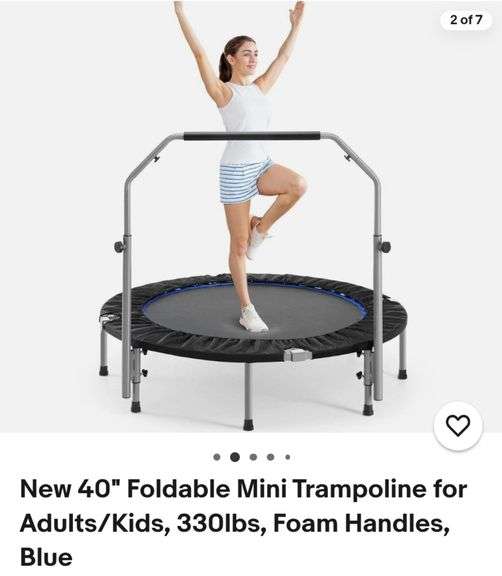 LOT 54 - New 40" Foldable Mini Trampoline for Adults/Kids, 330lbs, Foam Handles, Blue