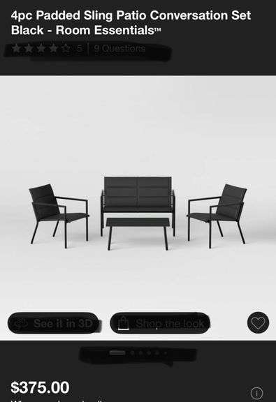 LOT 24y - 4pc Padded Sling Patio Conversation Set Black - Room Essentials™
