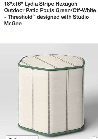 READ!! 18"x16" Lydia Stripe Hexagon Outdoor Patio Poufs Green/Off-White - Threshold™ designed with Studio McGee