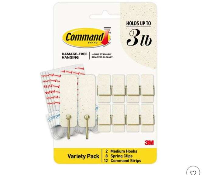 (3) Command Limited Addition Holiday Mixed Hooks Pack Vanilla Bean 10 Hooks 12 Strips: Plastic Adhesive Hangers, 9.25" Height