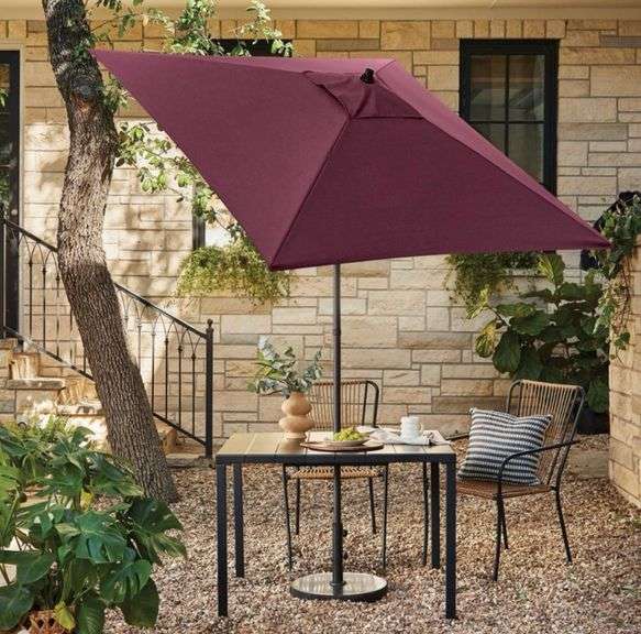 LOT 43y - 6' Square Solid Outdoor Patio Market Umbrellas Maroon with Black Pole - Threshold™