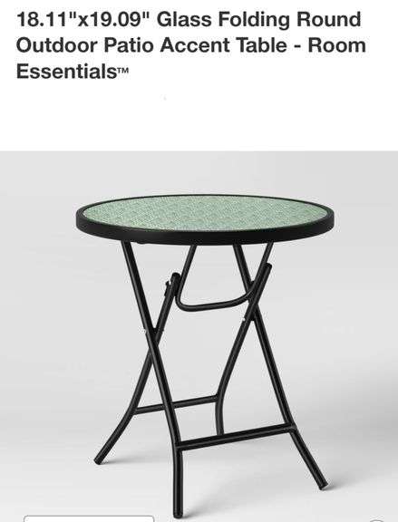 LOT 180 - 18.11"x19.09" Glass Folding Round Outdoor Patio Accent Table - Room Essentials