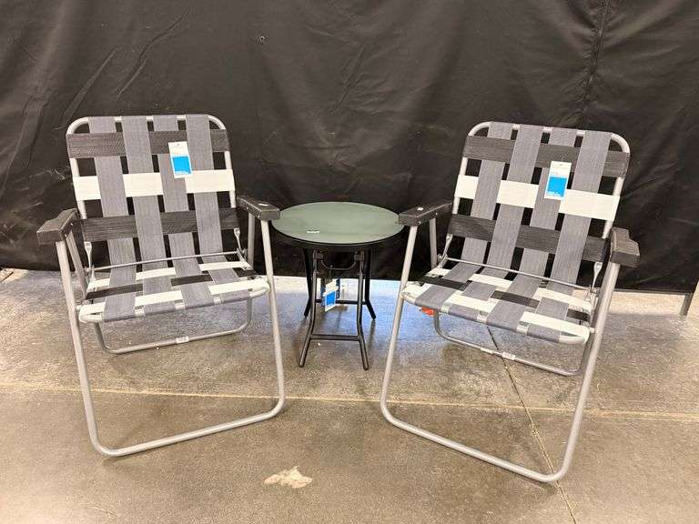 (2) Web Strap Folding Chair & Frosted Glass Folding Accent Table