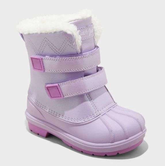 LOT 86 - Size 5T Cat & Jack Toddler Winter Boots-Faux Shearling Waterproof Hook-closure Purple