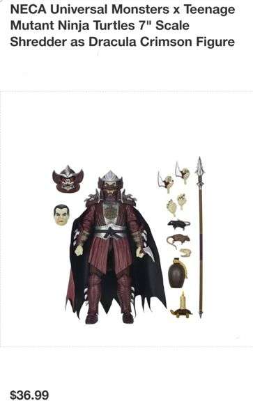 LOT 539 - NECA Universal Monsters x Teenage Mutant Ninja Turtles 7" Scale Shredder as Dracula Crimson Figure