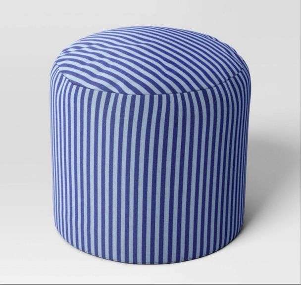 LOT 828 - Blue Striped Pouf Ottoman-Room Essentials
