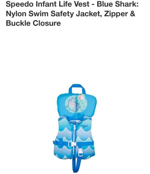 LOT 338 - Speedo Infant Life Vest - Blue Shark: Nylon Swim Safety Jacket, Zipper & Buckle Closure Up to 30lbs
