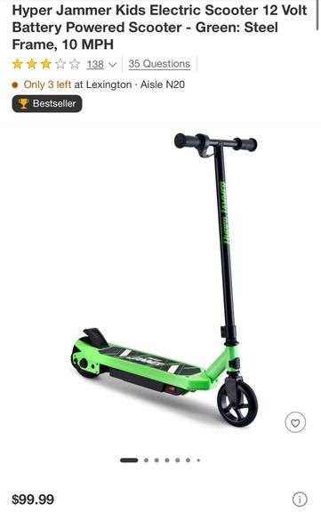 LOT 321 - Hyper Jammer Kids Electric Scooter 12 Volt Battery Powered Scooter - Green: Steel Frame, 10 MPH