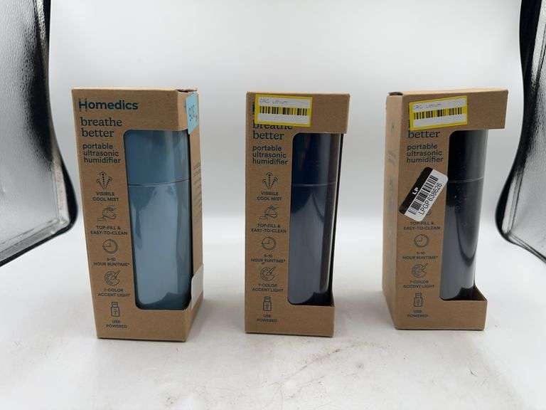 (3) HoMedics Portable Ultrasonic Humidifier, black, blue and navy blue