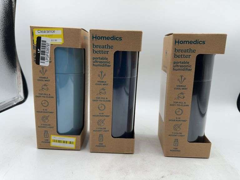 (3) HoMedics Portable Ultrasonic Humidifier, blue, navy blue and black