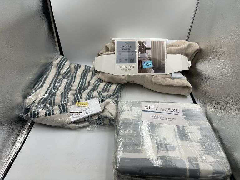 50x84 Blackout Aruba Window Curtain Panel - Threshold™, Striped Supersoft Towel - Parachute for Target and Twin Aria Reversible Duvet Cover Set - City Scene