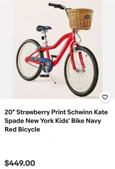 LOT 12y - 20" Strawberry Print Schwinn Kate Spade New York Kids' Bike Navy Red Bicycle