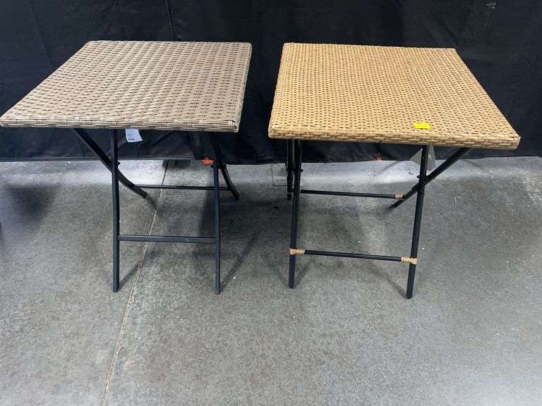 READ! (2) All-Weather Wicker Square Folding Outdoor Portable Side Table Light Brown - Room Essentials™: Steel Frame, Rust-Resistantwi