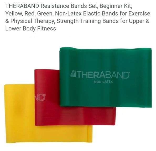 THERABAND Resistance Bands Set, Beginner Kit, Yellow, Red, Green, Non-Latex Elastic Bands for Exercise & Physical Therapy, Strength Training Bands for Upper & Lower Body Fitness